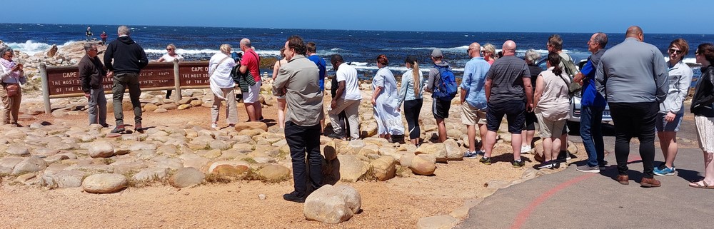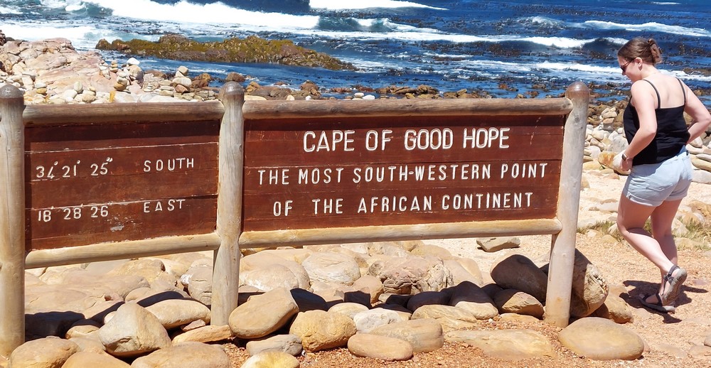 Hier standen die Leute Schlange, um ein Foto vom Schild und sich selbst machen zu lassen. Wahrscheinlich fühlt man sich mit diesem Fotodokument wie der portugiesischen Seefahrer und Entdecker Bartolomeu Diaz, der 1488 das Kap erstmalig gesichtet hatte.