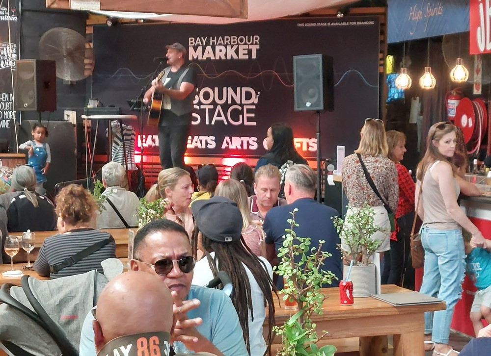 Der Bay Harbour Market entpuppte sich als riesengroße Markthalle mit Foodcourt und jeder Menge schöner Läden mit mehr oder weniger kunstgewerblichen Angeboten und Live Musik.
