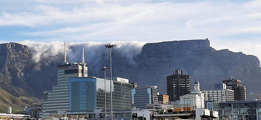 Der Hafen von Kapstadt hat eine sehr schmale Einfahrt, weshalb die Hafenbehörde die Gefahr einer Havarie wegen Windböen ausschließen will. Eine blockierte Hafen-Ein- bzw. Ausfahrt wäre der GAU.