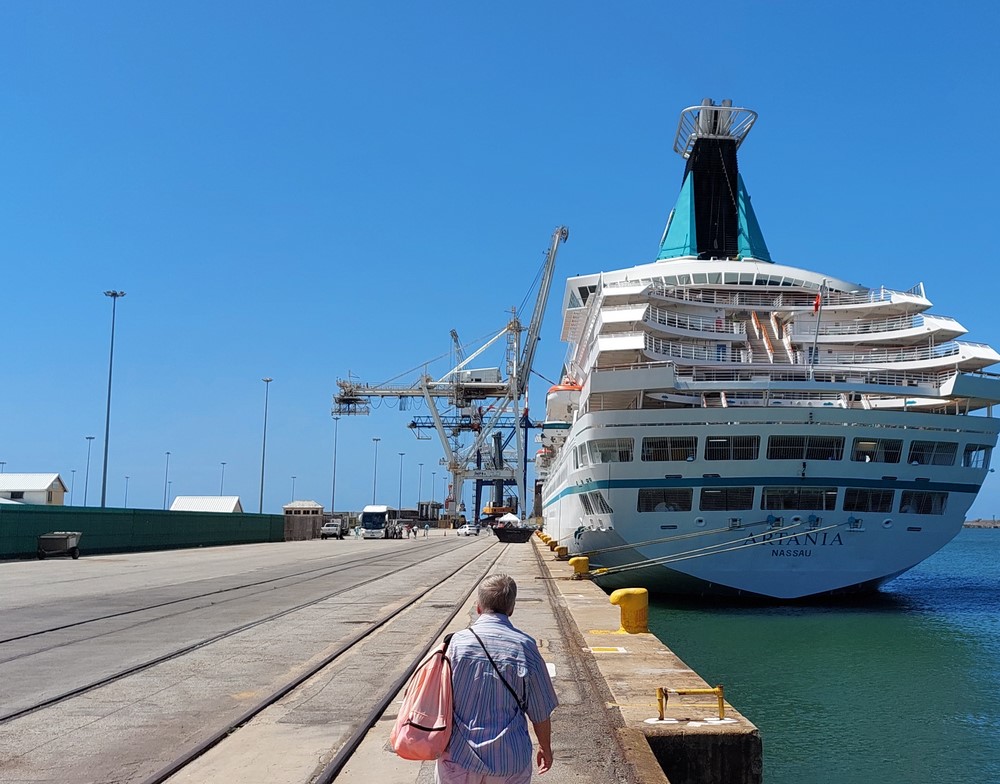 Die ARTANIA vor dem Nelson Mandela Cruise Terminal.